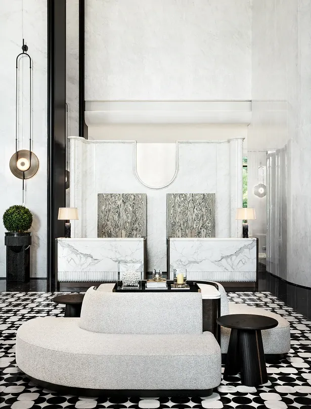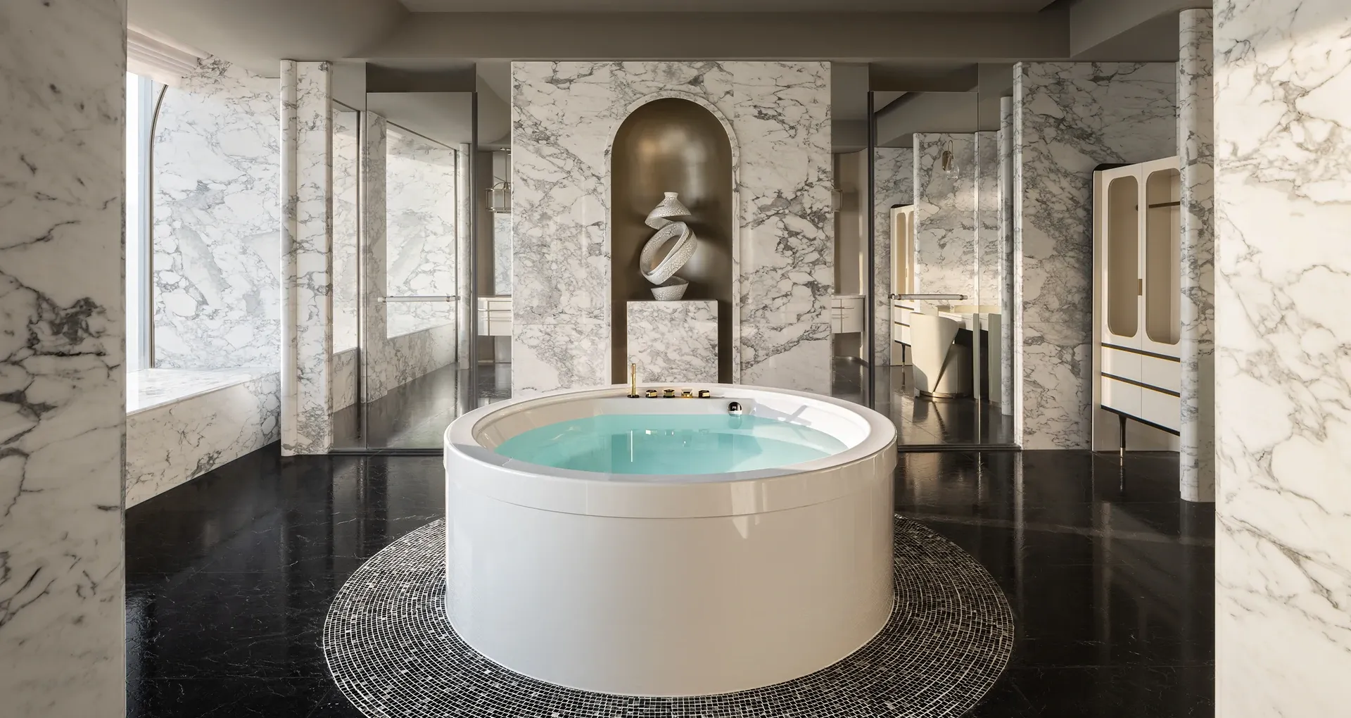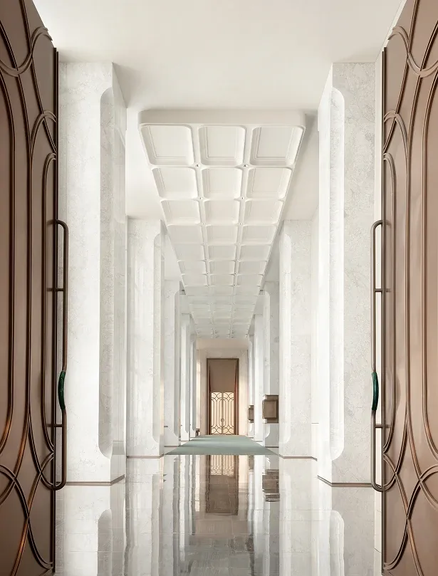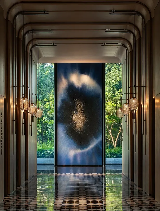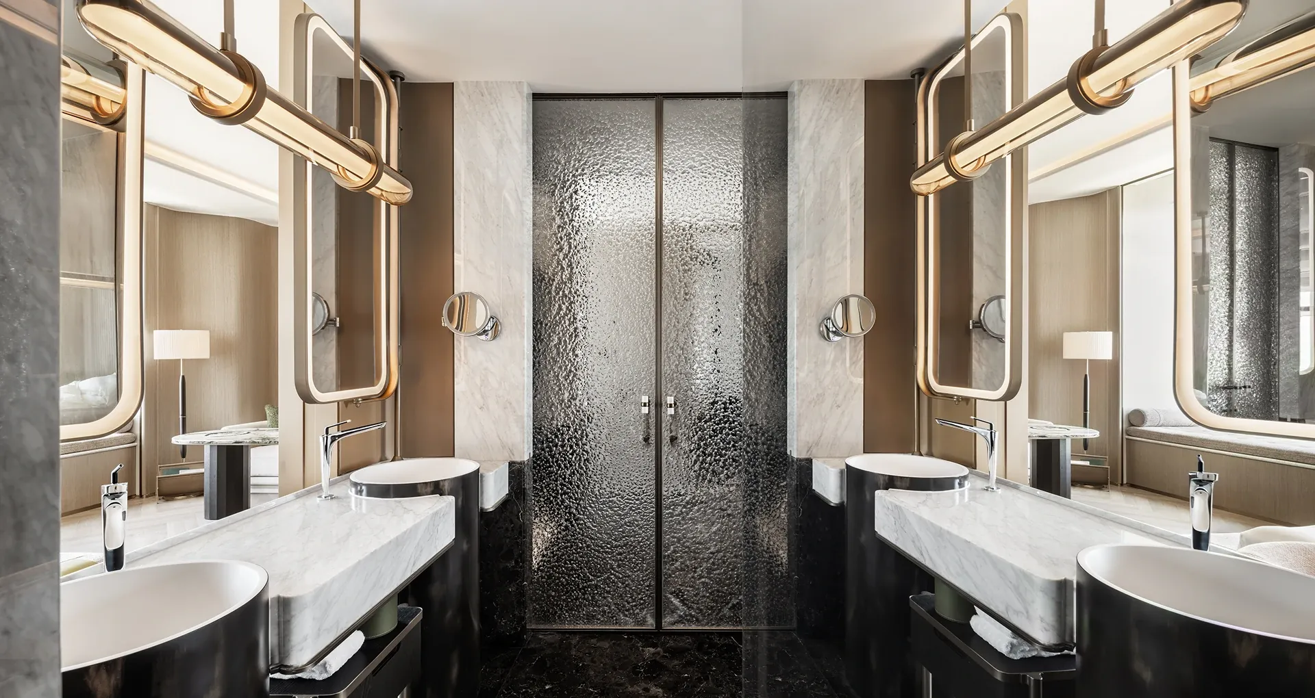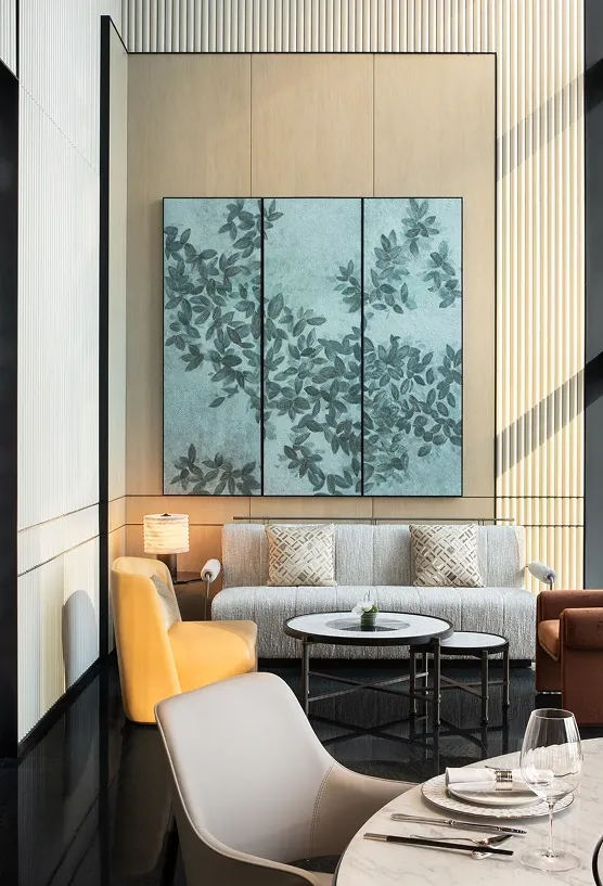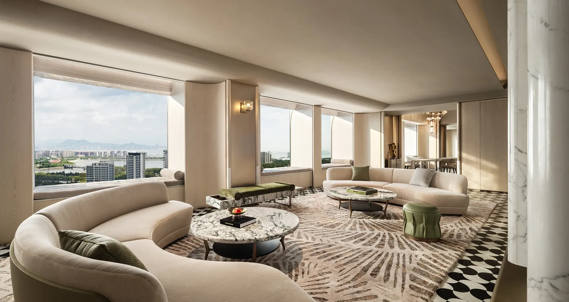 The guest room design merges the ultimate experience of 'living above the clouds' with the profound sense of belonging inherent to a residence. Meticulously crafted details are evident throughout, complemented by custom furnishings. These elements, blended with rich textural finishes and artistic wall treatments, create an ethereal sense of layered sophistication and a deeply comforting atmosphere of refined elegance.