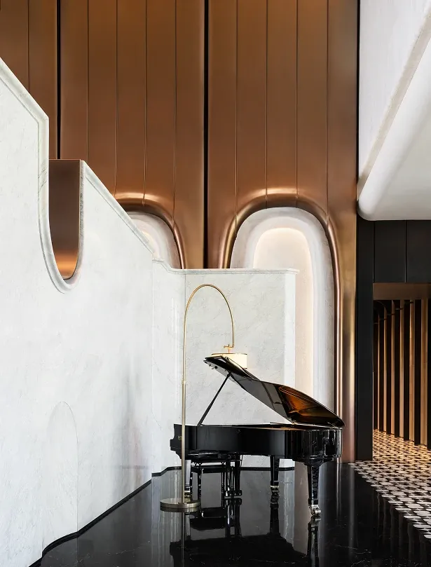 The hotel's design centers on the theme of "The legacy reborn in Minnan." Inspired by the red-brick ancient dwellings of Southern Min and the Shuko celadon—an intangible cultural heritage craft—various textures and materials intertwine to narrate a story throughout the space. Guests are invited to experience the echoes of history and the warmth of culture above the Egret Island skyline.