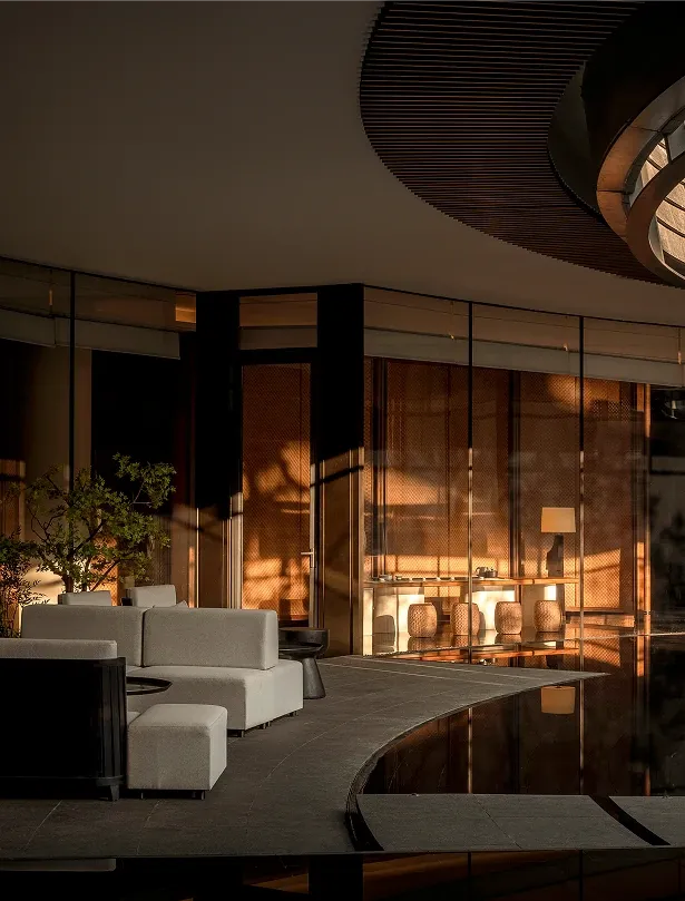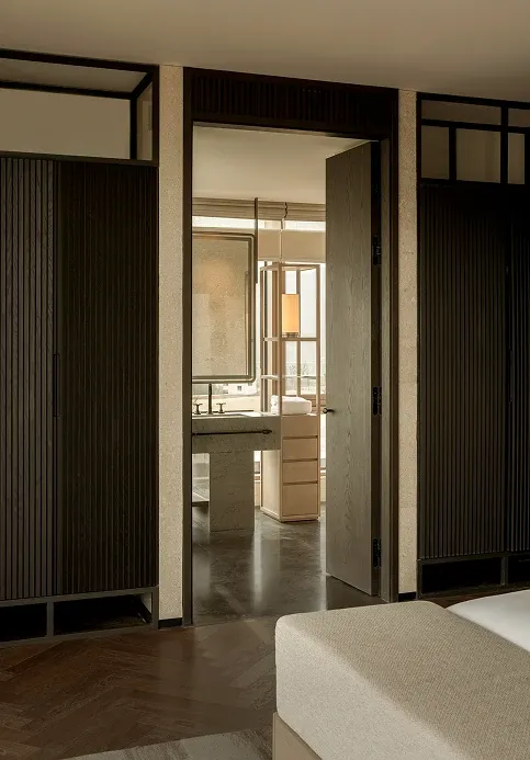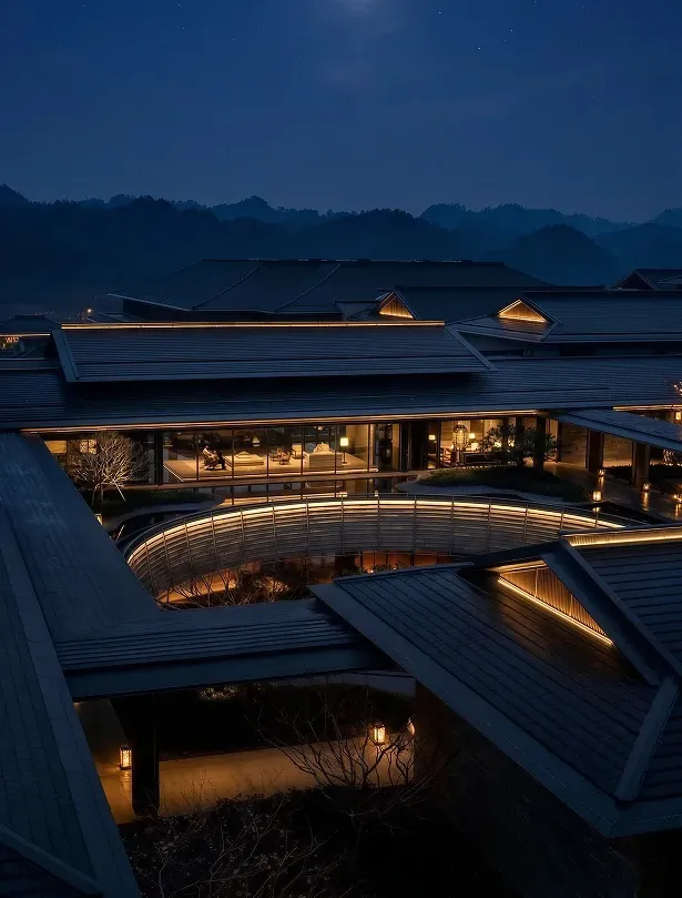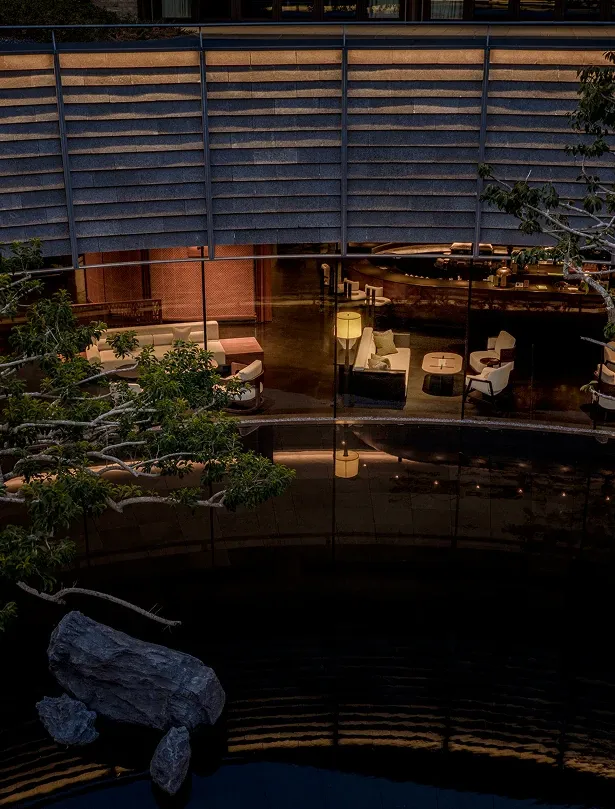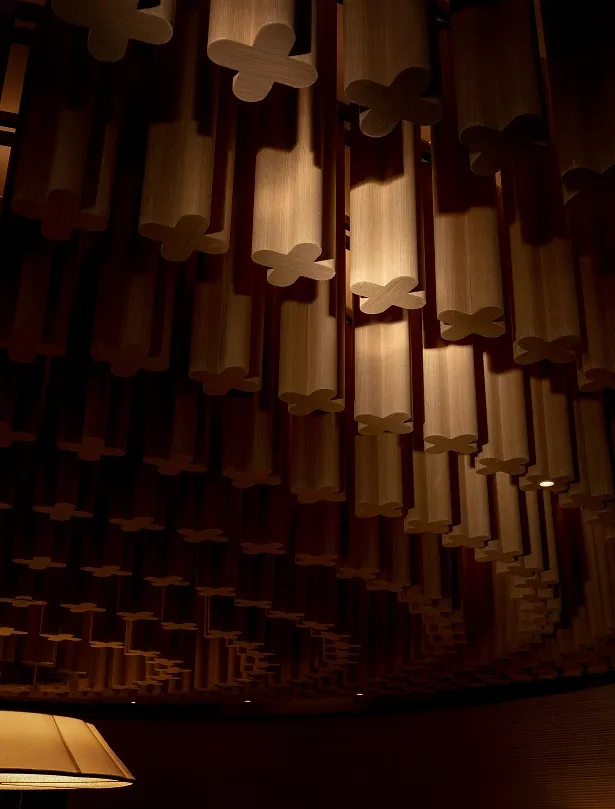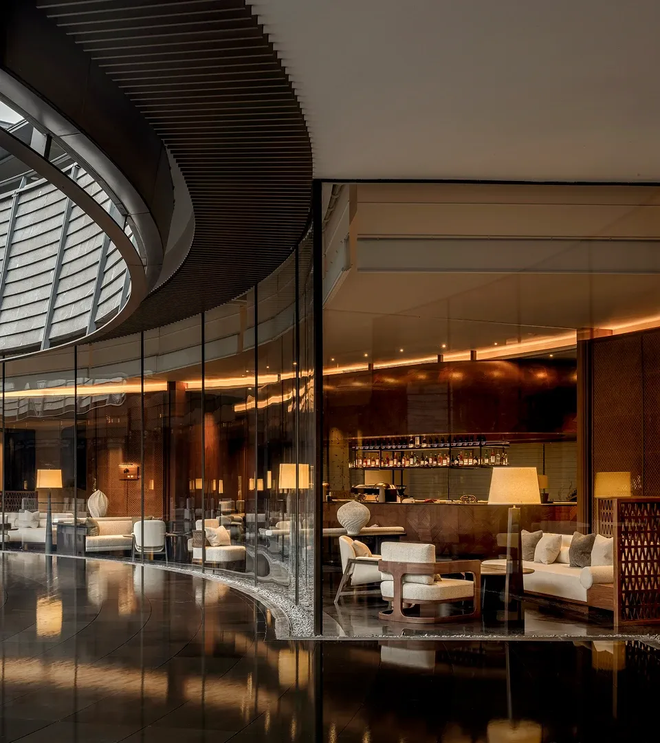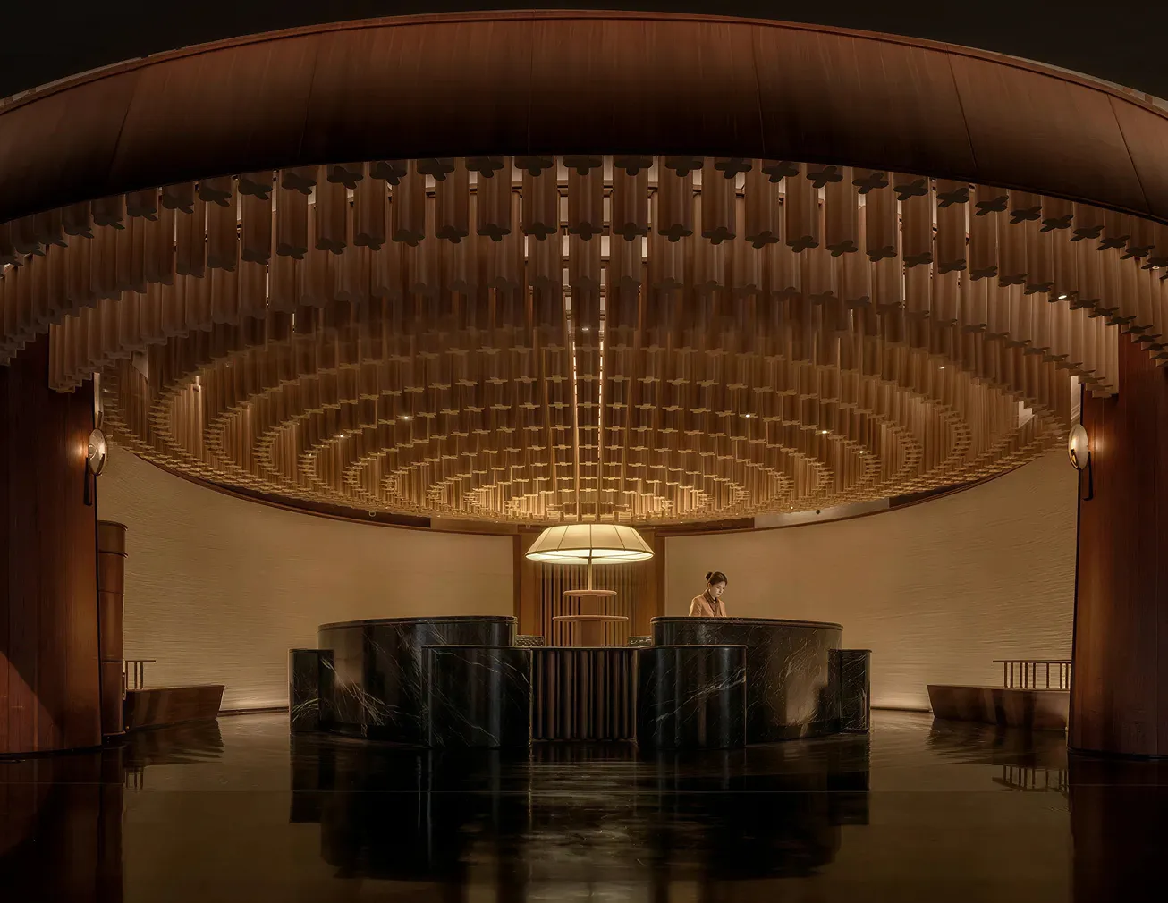 Nestled within Hangzhou's Tianmu Mountain — the closest primeval forest to the city — the hotel is enveloped by lush groves of millennial trees. Inspired by the life cycle of these ancient woods, CCD seamlessly blends traditional Wuyue woodworking craftsmanship with modern aesthetics to craft a secluded sanctuary that coexists harmoniously with the natural world.